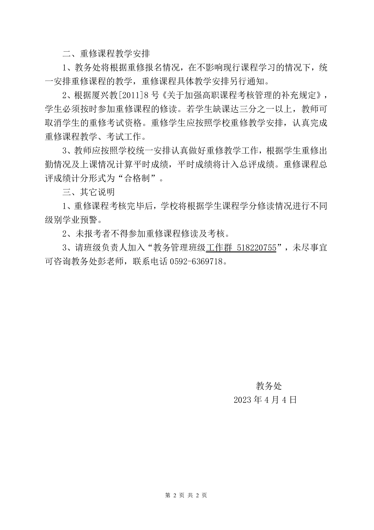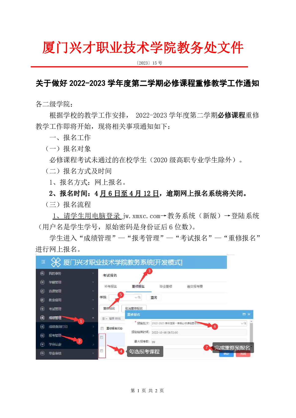 关于做好2022-2023学年度第二学期必修课程重修教学工作通知