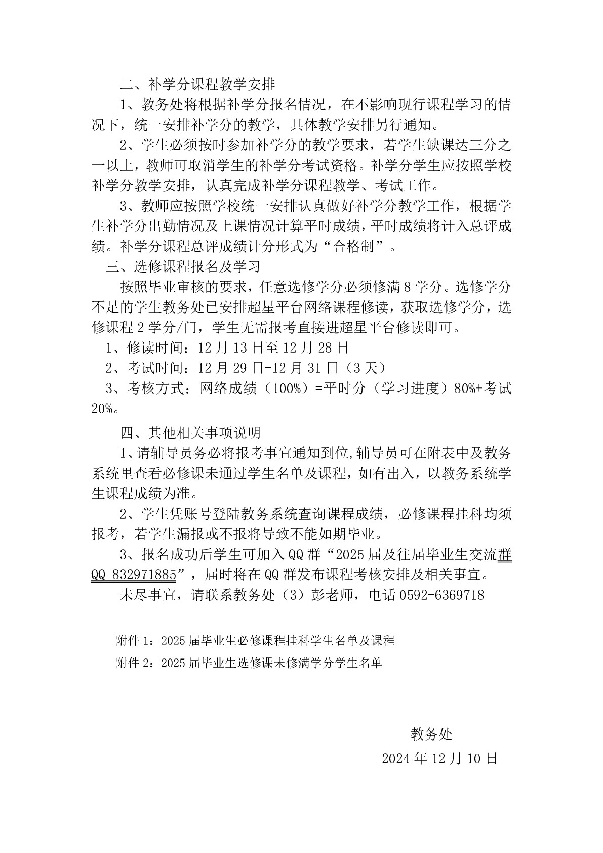 关于做好2025届及往届毕业生必修课、选修课程补学分报考通知