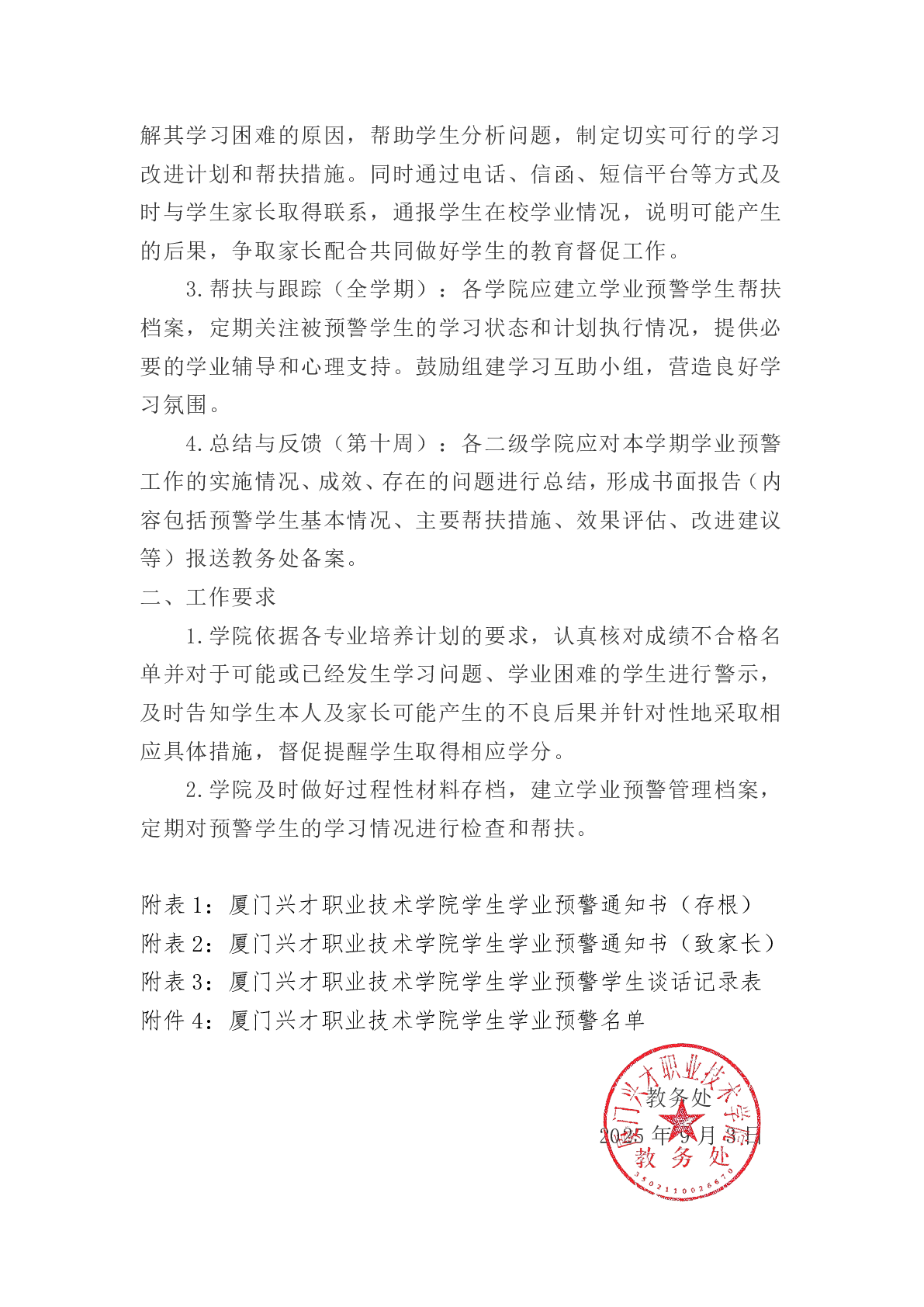 附表2 :厦门兴才职业技术学院学生学业预警通知书(致家长).docx