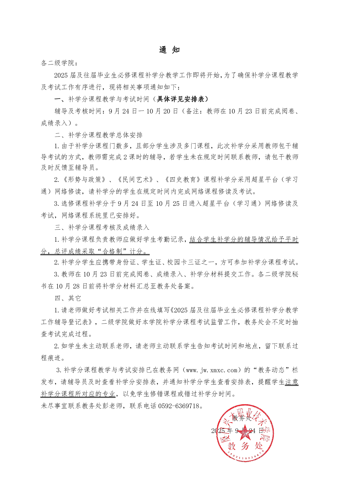 关于做好2025届及往届毕业生必修课、选修课程补学分报考通知