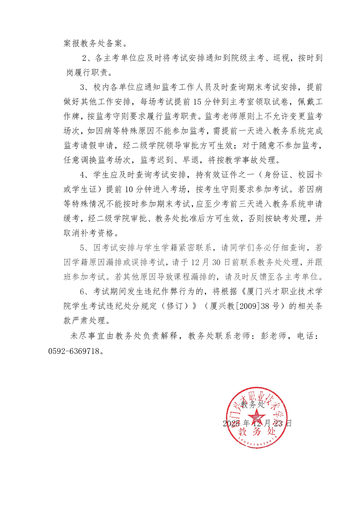 关于做好2025-2026学年第一学期期末考试工作安排的通知