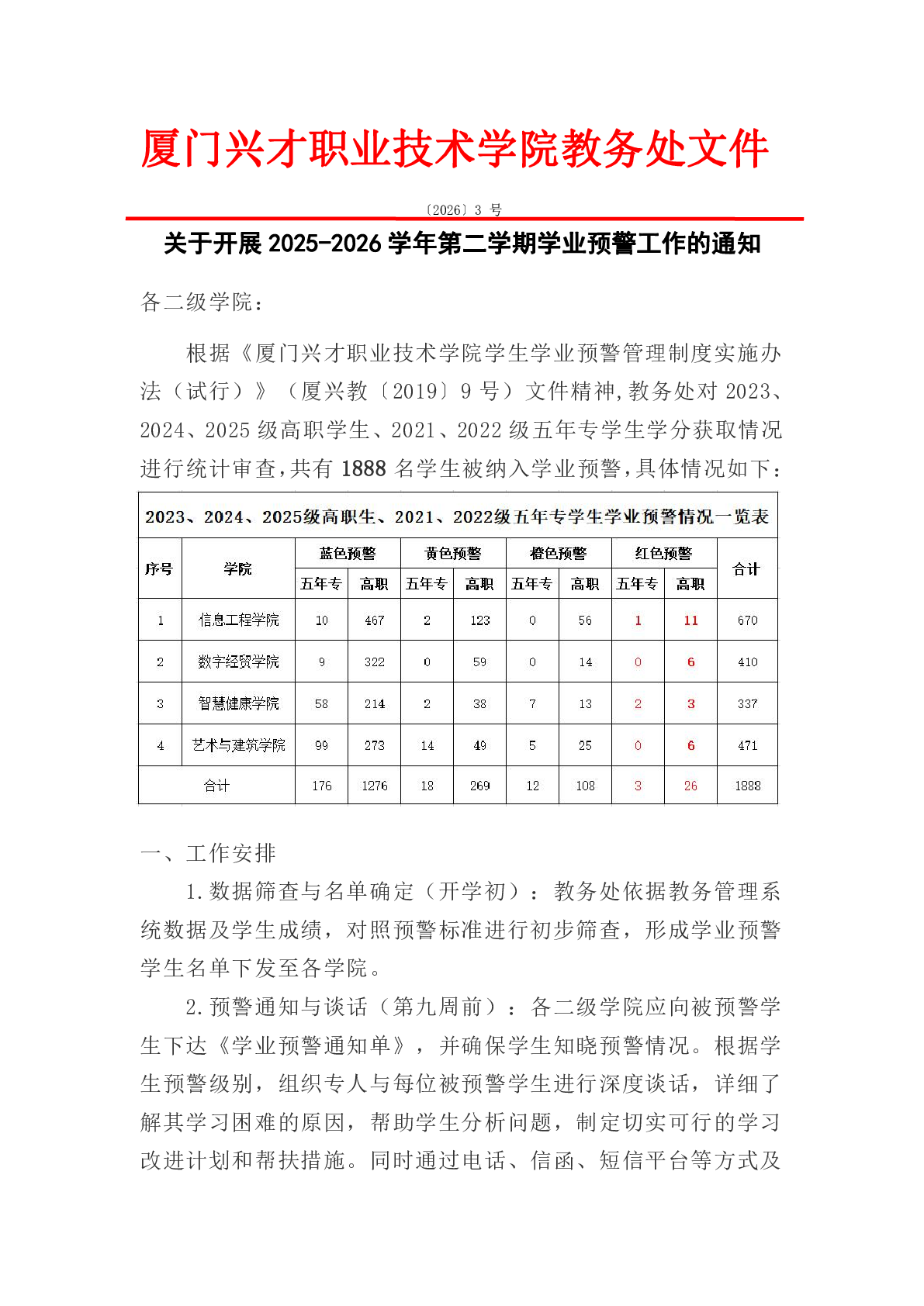 关于开展2025-2026学年第二学期学业预警工作的通知